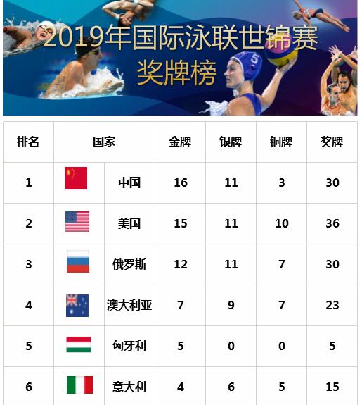 世錦賽中國(guó)金牌榜第一斬16金 孫楊徐嘉余盡顯威力